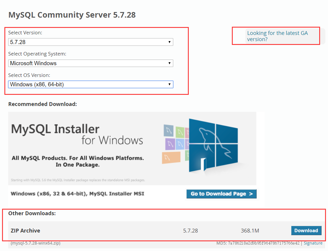1.官网下载mysql-5.7.28-winx64压缩包版:https://dev.mysql.com/downloads/mysql/