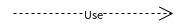依赖关系(Dependency)可以简单的理解为一个类A使用到了另一个类B," … uses a …",被依赖的对象只是作为一种工具在使用,而并不持有对它的引用。而这种使用关系是具有偶然性、临时性的、非常弱的,但是B类的变化会影响到A;表现在代码层面,为类B作为参数被类A在某个method(方法)中使用。用带燕尾箭头的虚线表示。表示一个类依赖于另外一个类的定义;依赖关系仅仅描述了类与类之间的一种使用与被使用的关系。