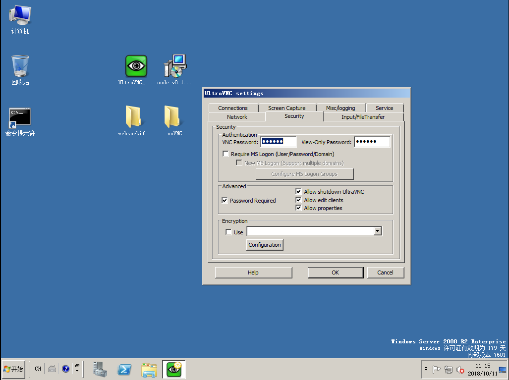1、在远程主机中安装UltraVNC,并开启服务,设置密码