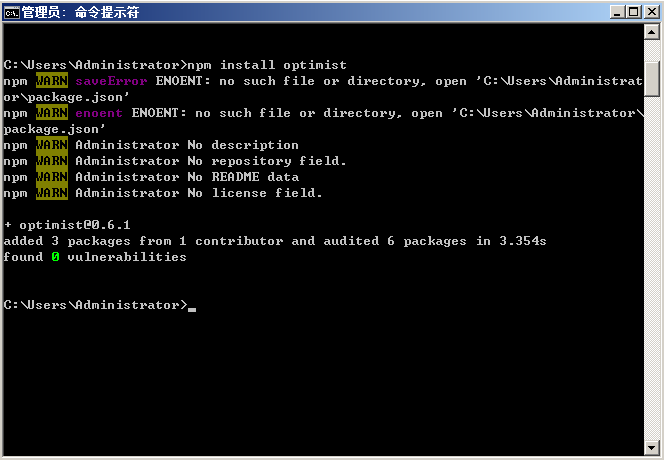C:\Users\Administrator>npm install optimist