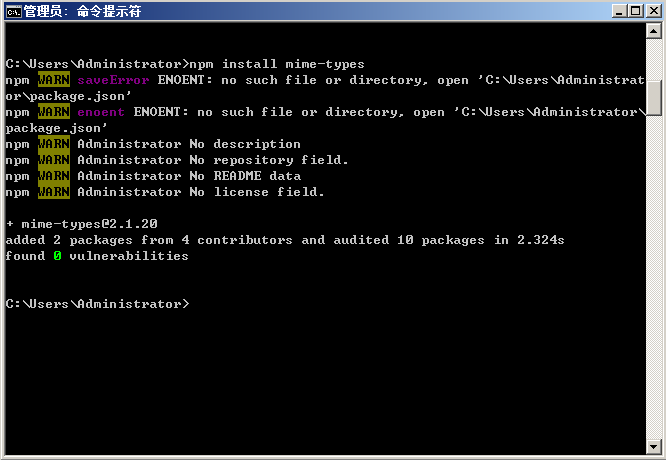 C:\Users\Administrator>npm install mime-types