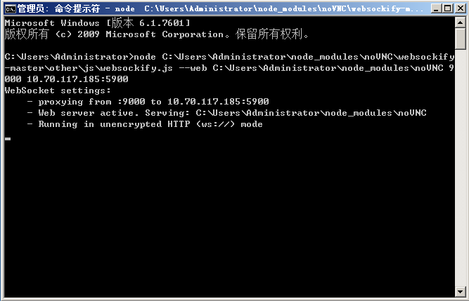 C:\Users\Administrator\node_modules\noVNC\websockify-master\other\js>node websockify.js --web C:\Users\Administrator\node_modules\noVNC 9000 http://10.70.117.185:5900