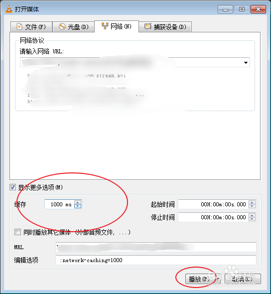 - 别的选项不用动,如果网络不好,那么可以点击显示这里,把缓存设置得大一点,然后就可以流畅播放视频了的。