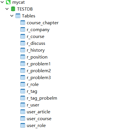 注意是在mycat中,SELECT * FROM r_problem 就会得到 三个表的数据集合。