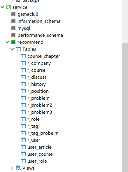在贴一张recommend原数据库的图,和TESTDB是一样的