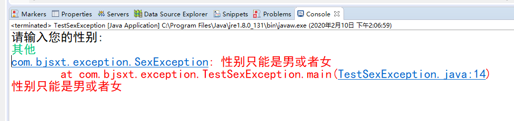 throw new SexException("性别只能是男或者女");