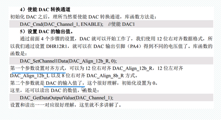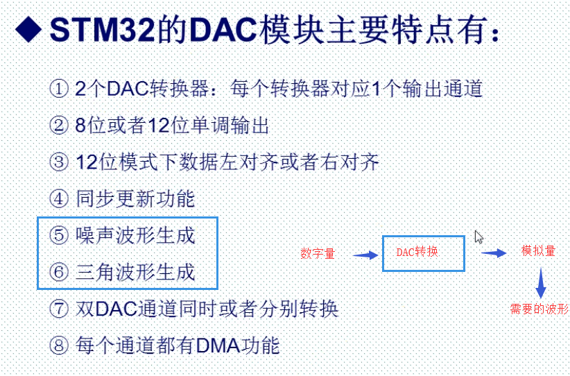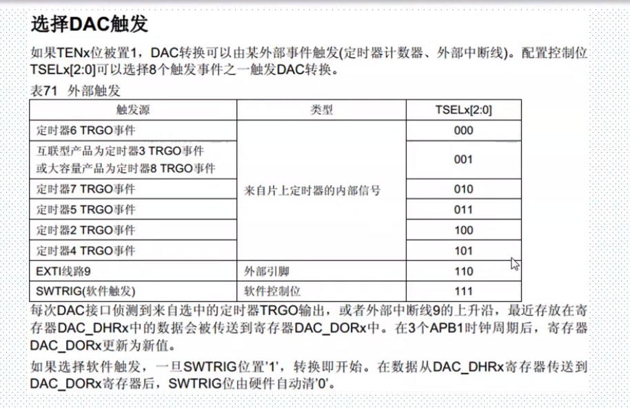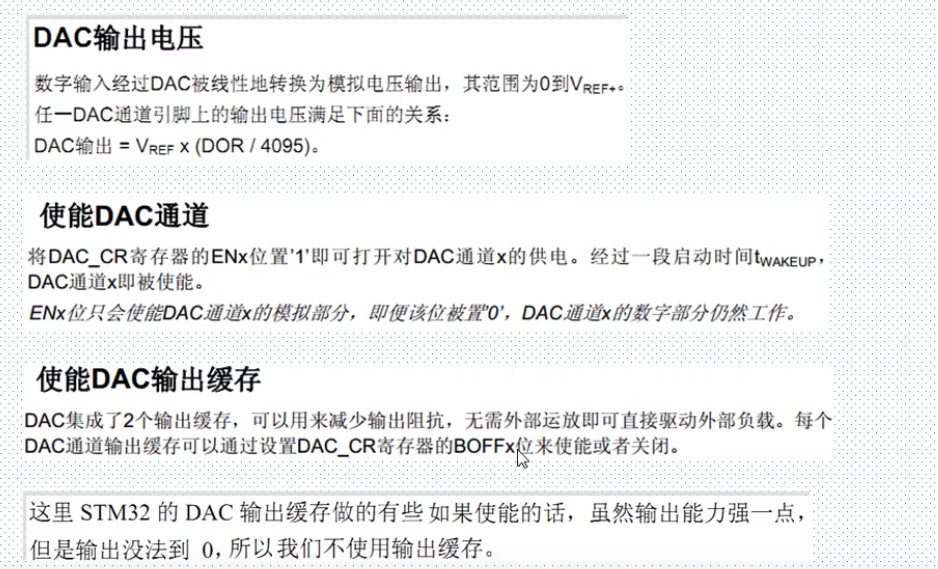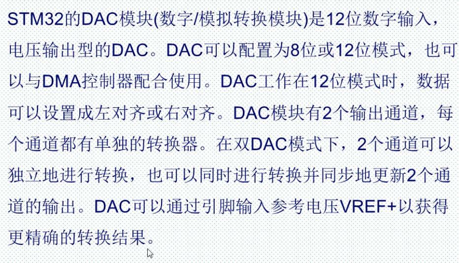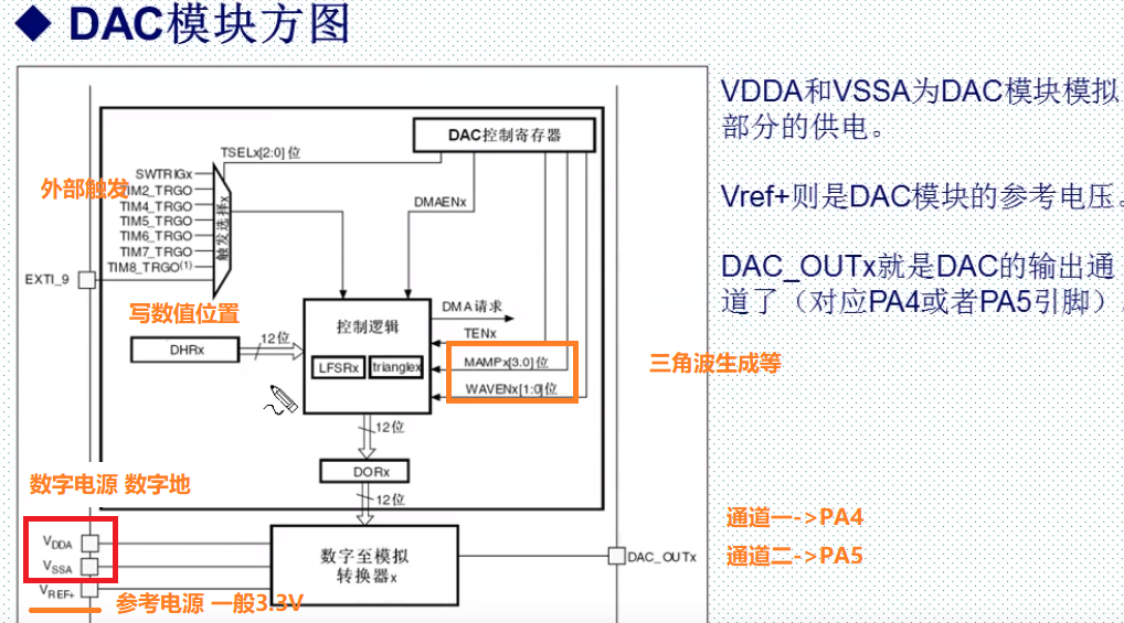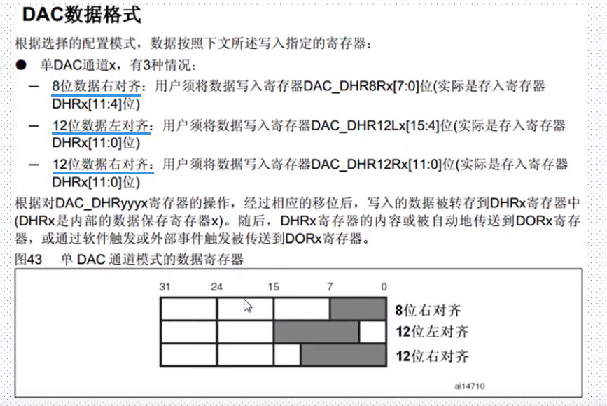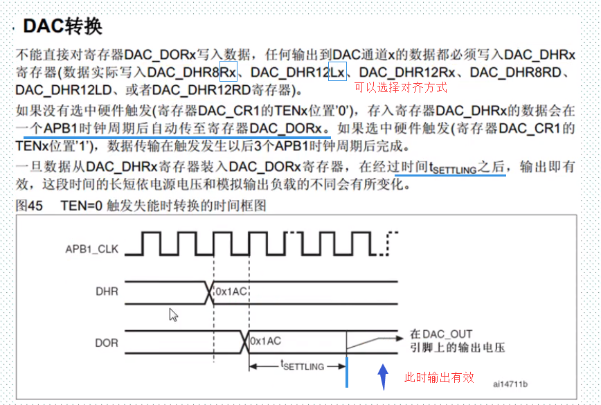 一、简介 类似于ADC模数转换,DAC有许多相似的地方。 DAC模块的主要特点如下: 需要注意的几点是: PA4、PA5需要设置为模拟输入,而不是模拟输出,否则将不能产生正确电压。 采用哪种对齐方式就写到相应寄存器中: DAC触发的具体描述: 硬件连接如下: 具体的设置步骤: 来源:CSDN作者:林中明月间链接:https://blog.csdn.net/qq_39171574/article/details/104221315 标签 dac