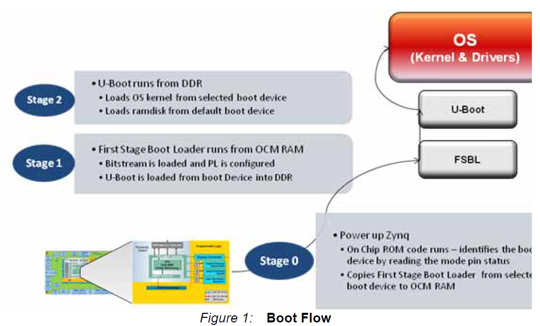 阶段1时候FSBL从片上RAM启动,加载比特流文件将PL部分配置好,然后将UBoot加载到DDR启动;