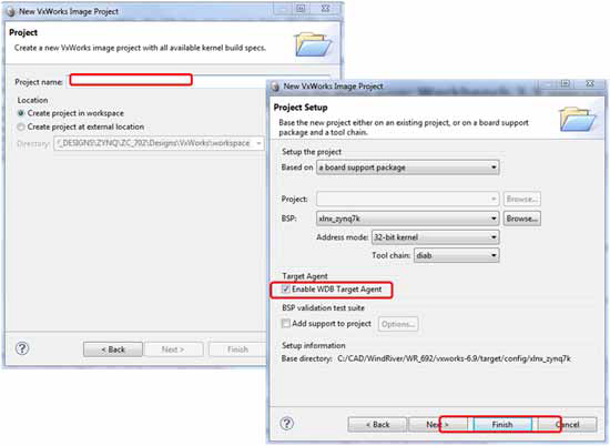 填写工程名后,下一步,不要忘记勾选Enable WDB Target Agent。