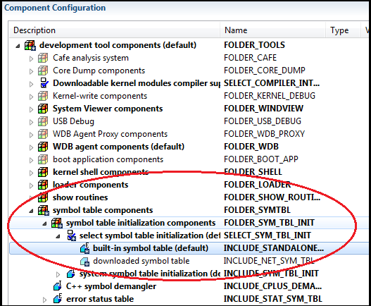 finish之后,在左侧工程下方有个kernel configuration,双击打开内核配置,这个built-in symbol table一定记得记得记得使能。
