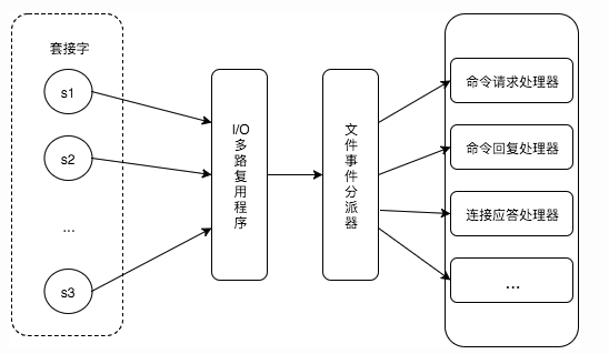 Redis 基于 Reactor 模式开发了自己的网络事件处理器,使用 I/O 多路复用程序来同时监听多个套接字,并将到达的事件传送给文件事件分派器,分派器会根据套接字产生的事件类型调用相应的事件处理器。