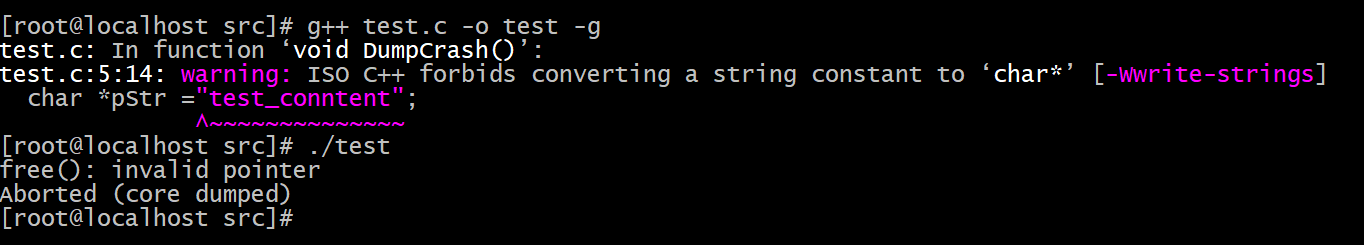 #6 0x0000000000400722 in DumpCrash () at test.cpp:8