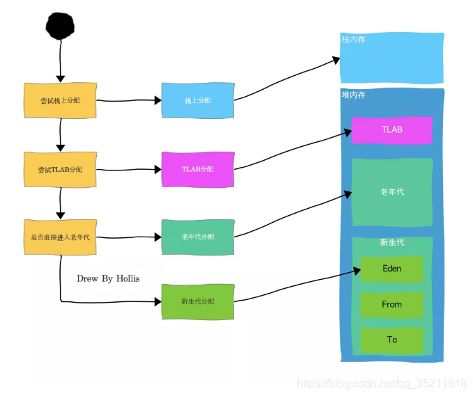 如果JIT经过逃逸分析,发现有些对象没有逃逸出方法,那么有可能堆内存分配会被优化成栈内存分配。(关于逃逸分析和栈上分配可以参考:深入理解Java中的逃逸分析、对象并不一定都是在堆上分配内存的)