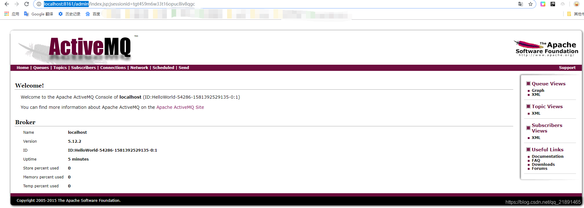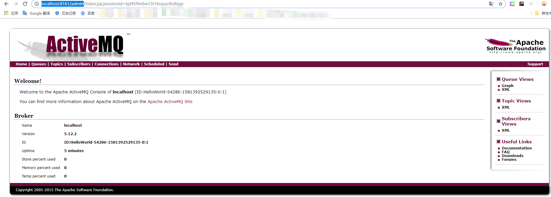 6.地址栏访问http://127.0.0.1:8161/出现如下页面表示服务成功启动