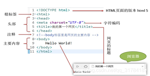 - HTML网页的组成: