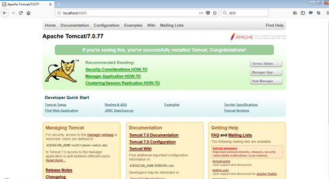 - 在命令行中运行catalina run或者 startup启动Tomcat服务器,在浏览器地址栏访问如下地址进行测试