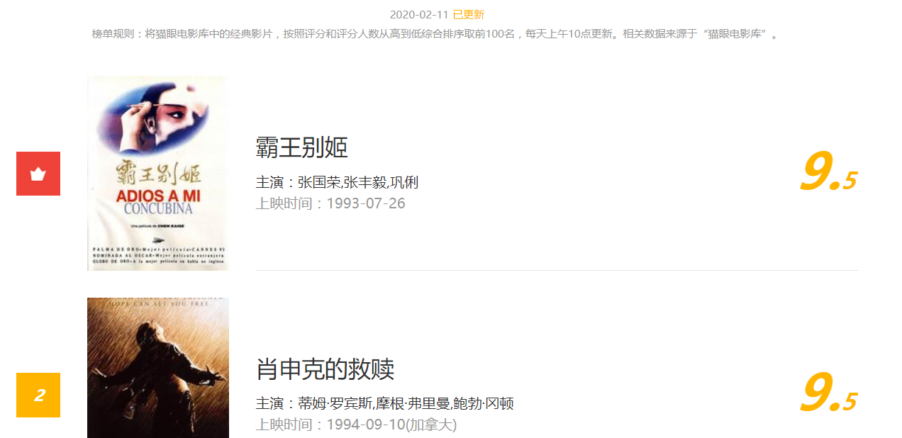 猫眼电影TOP100榜单URL:https://maoyan.com/board/4?offset=0