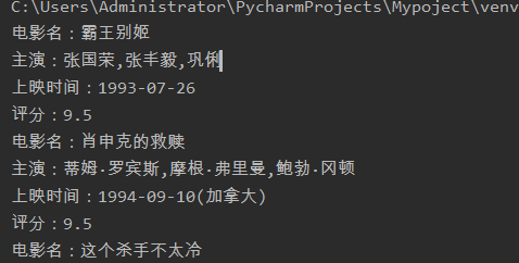 print("电影名:" + i[0].strip())