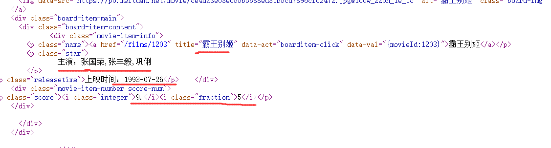 页面详情如下,我们要提取的信息有电影名称、主演、上移时间和评分。