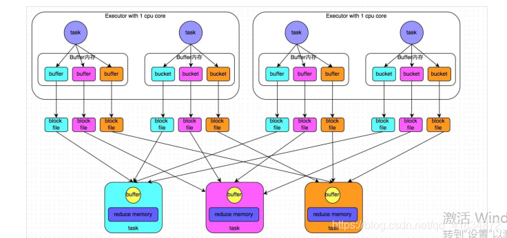 – Shuffle Read:reduce task就会从上一个stage的所有task所在的机器上寻找属于自己的那些分区文件,这样就可以保证