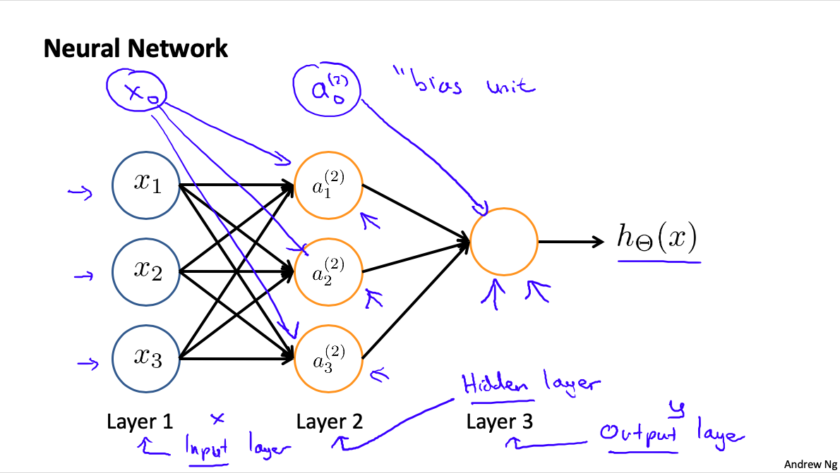 hθ(x)=g(Θ10(2)a0(2)+Θ11(2)a1(2)+Θ12(2)a2(2)+Θ13(2)a3(2))