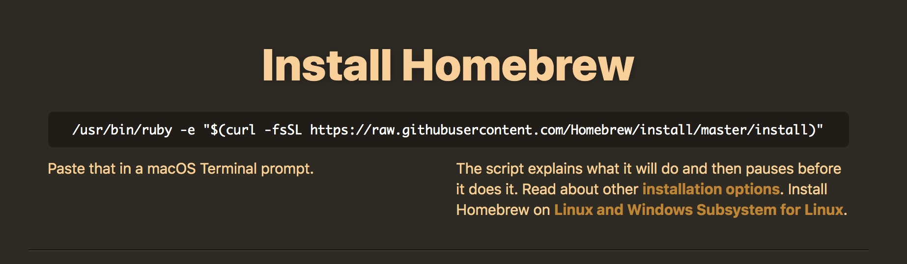 即使不懂怎么回事,也是可以用的,只需要打开 macOS 的「终端」,输入下面这行安装 Homebrew 的命令然后回车即可:
