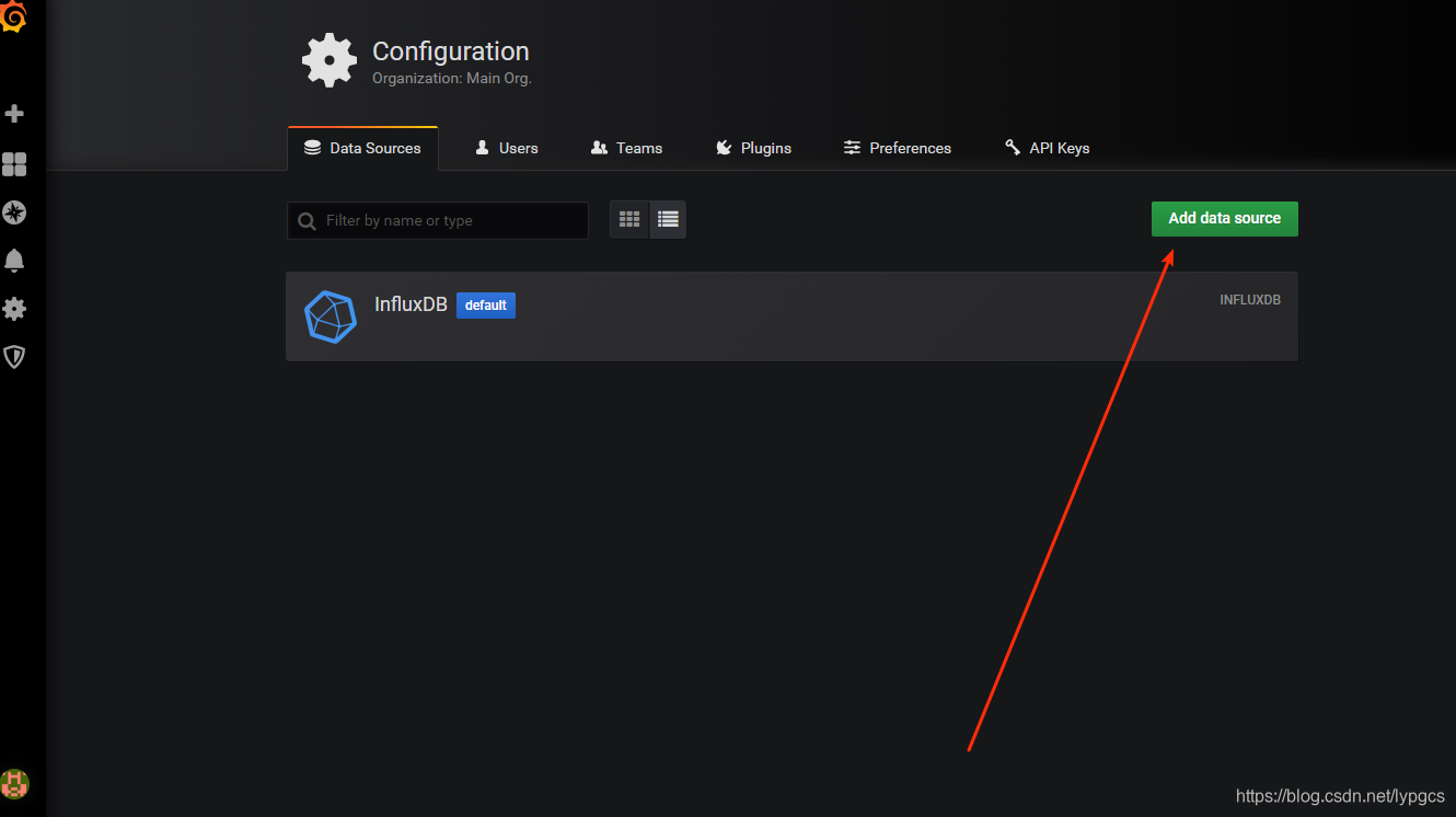 - 添加新的数据源,我这里是添加过了,所以会有一个influxdb的数据源显示。