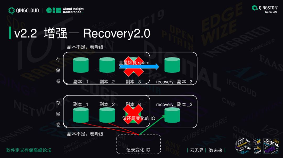 在灾备方面 NeonSAN®️ 也做了大量优化工作。以前灾备最小的颗粒度是 64G,只要这个 Shard 有变化,我们就需要把 64G 文件复制到远端。现在我们把独立颗粒度做了优化,最小可以是 64 兆,只需要把变化的数据以 64 兆为单位做复制,这样可以提升复制效率,降低对带宽的占用。