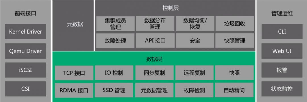 除了对 IO 路径进行优化之外,NeonSAN®️ 还提供了诸多企业存储常用功能,比如标准 iSCSI 接口支持,和最新的 NVMe over Fabric 规范支持,以及多路径故障切换、无中断的数据恢复、迁移和容量均衡等功能。