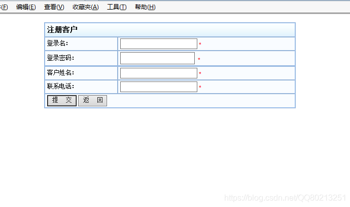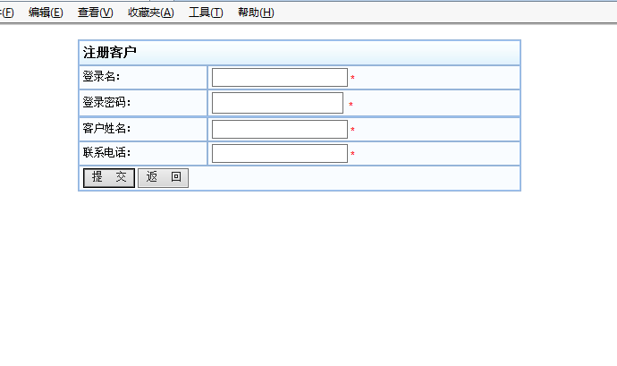 在使用系统时必须注册成为系统的客户,并输入详细的客户信息。对应的磁盘文件为servlet/CustomServlet?method=regeditPage,会员注册页面设计如图5-20所示: