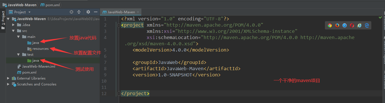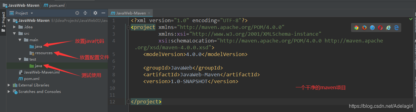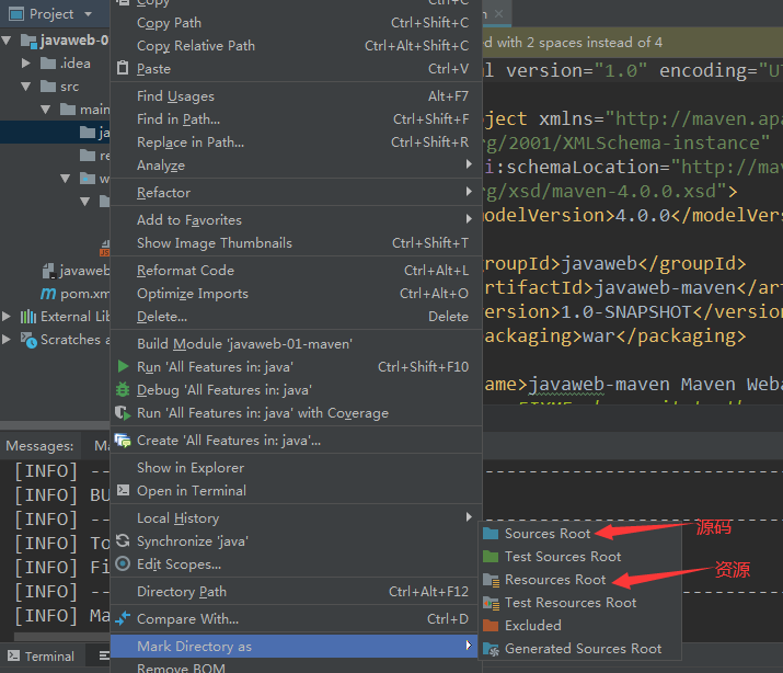 在maven模板创建的项目中,在main下创建两个目录:java和resources。