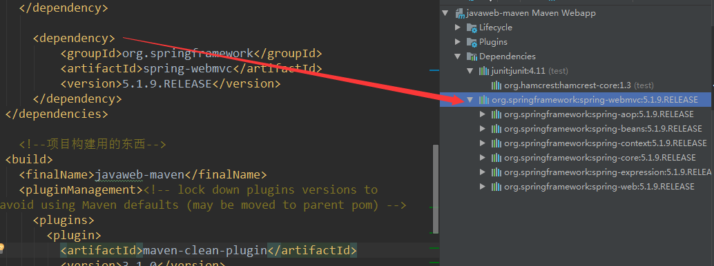 Maven的一个高级之处在于,它会自动导入一个jar包所依赖的其他jar包,如: