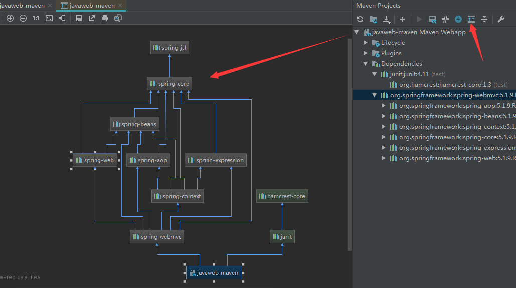 可以通过IDEA查看目录树(jar包的关联联系图):