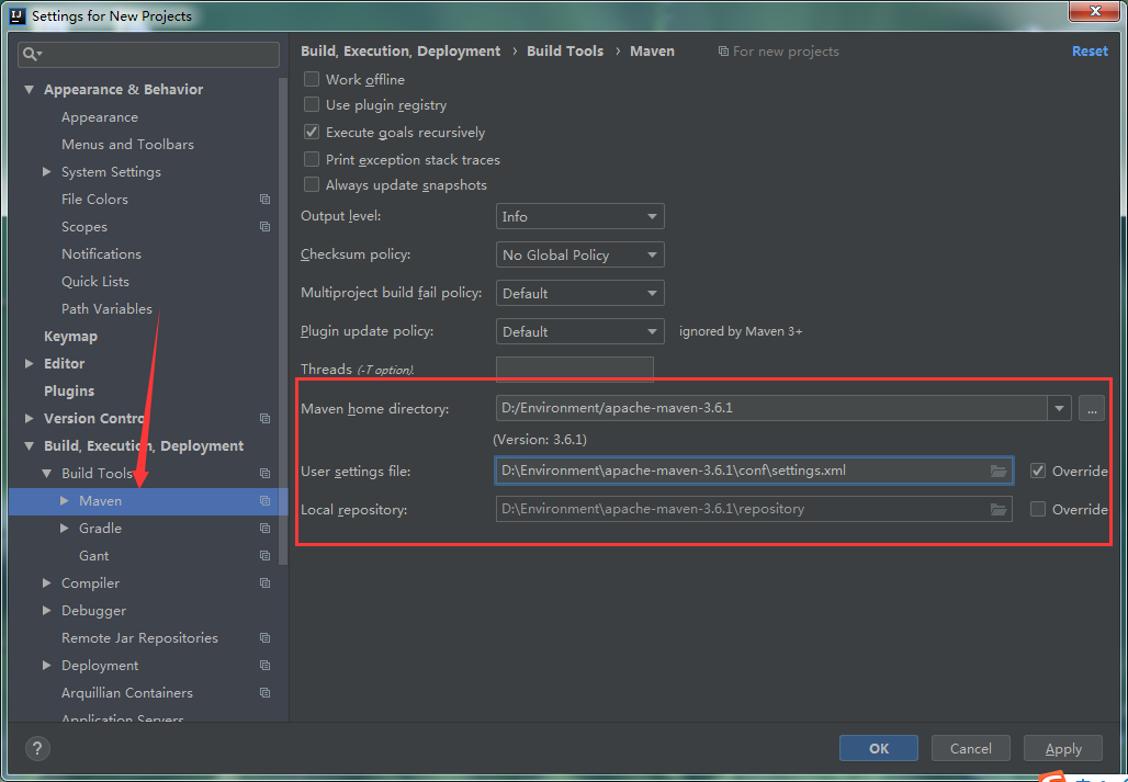 在创建项目的时候,避免每次去设置路径,可以在IDEA的全局设置中进行配置。