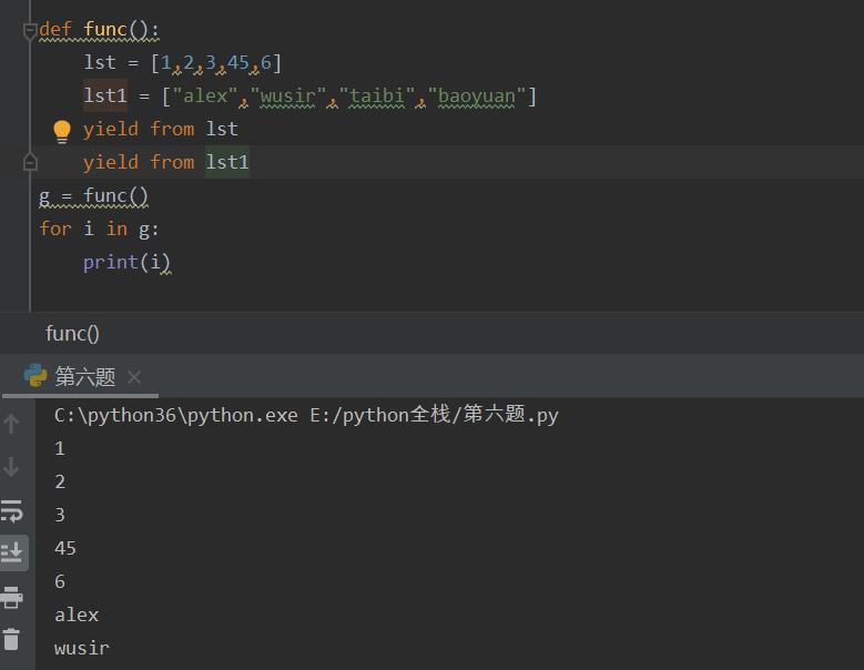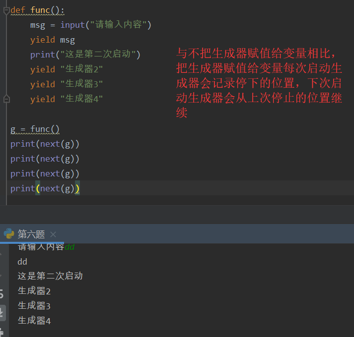 生成器的地址 <generator object func at 0x00000087C2A10CA8>