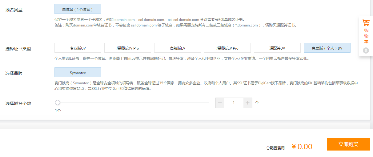 3.购买成功后,来到证书控制台,申请证书,并验证提交审核