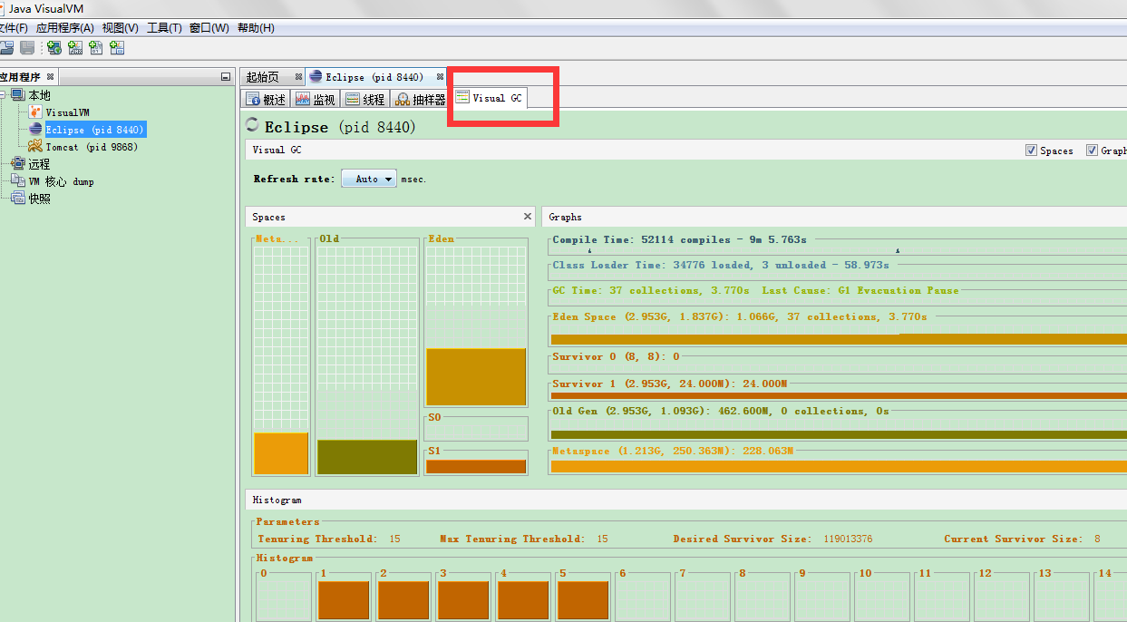 问题提描述 1、在运行窗口中打开dos窗口,进入java VisualVM页面,没有Visual GC页面,如下图 2、解决方法 选择菜单:工具>插件>可用插件,在选中Visual GC进行安装,安装成功入下图 来源:CSDN作者:会飞的狼阿海链接:https://blog.csdn.net/u011832925/article/details/104247835 标签 visual
