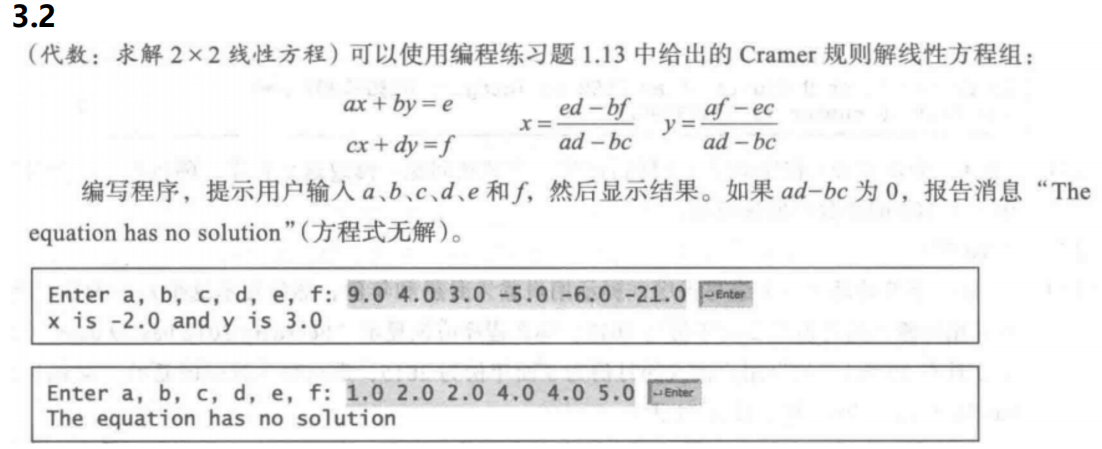数值:方程组中的常数 x值 y值 a*d-b*c