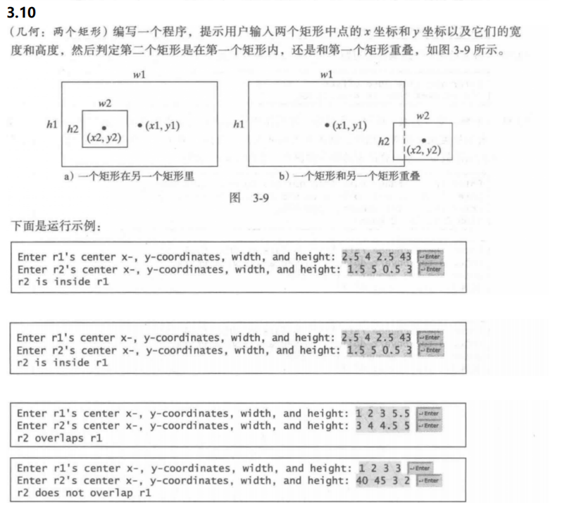 System.out.print("请输入第二个矩形的中心点坐标x,y和长,高:");