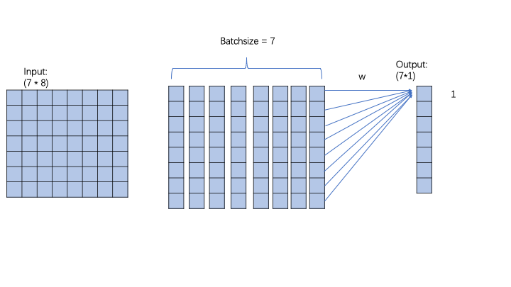 示例图所示不难分析出来,每一个输入为(8 * 1)对应一个(1 * 1)的输出,另外需要添加一个b的偏置项。最开始我认为有7个输入向量,应该有7个b.所以选了D项。