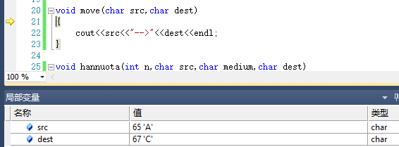 hannuota(n-1,src,dest,medium);// 把n-1个盘子由A 移到 B;(C为过渡盘)