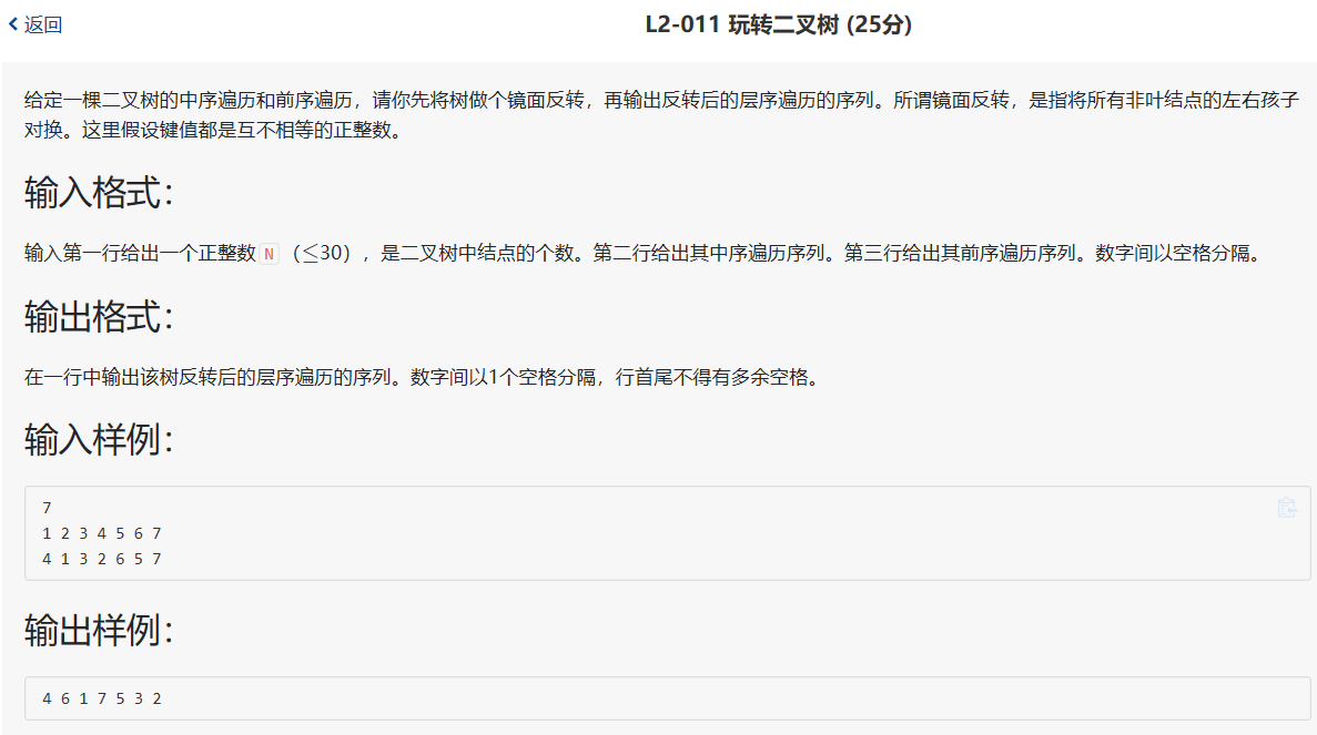 1.已知先序遍历,中序遍历,求层序遍历(这道题求层序的镜面反转,所以每一层从右向左遍历)