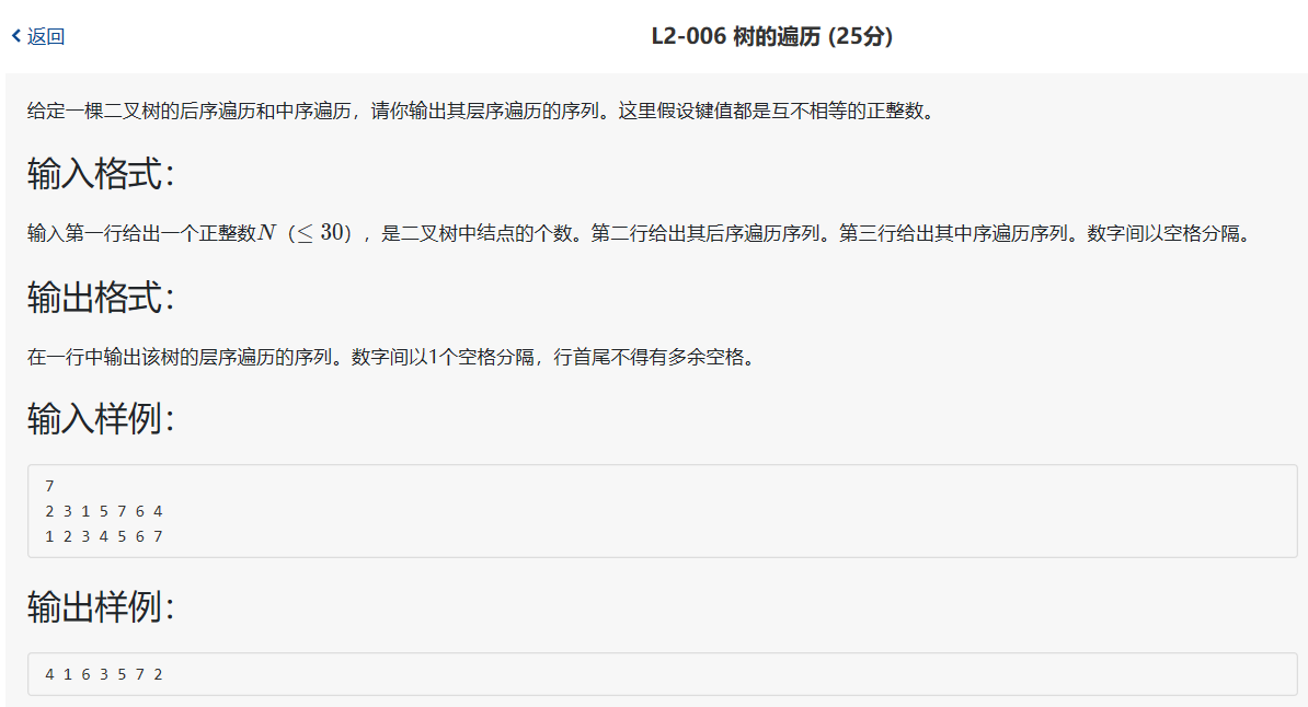 2.已知后序遍历和中序遍历,输出其层序遍历的序列。