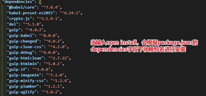 模块的依赖都被写入了package.json文件后,他人打开项目的根目录(项目开源、内部团队合作),使用npm install命令可以根据dependencies配置安装所有的依赖包。