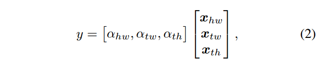 其中,a = [ahw, atw, ath], a是一个C2*3大小的矩阵,其中3表示三个视角。为了避免从多个视图得到的响应发生巨大爆炸,a用softmax函数对每一行进行归一化。