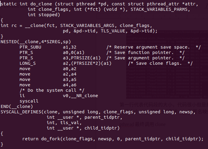 实际pthread编程最终也是调用clone来完成线程的创建。图12 为pthread编程调用的过程(可以反汇编libpthread.so文件查看)
