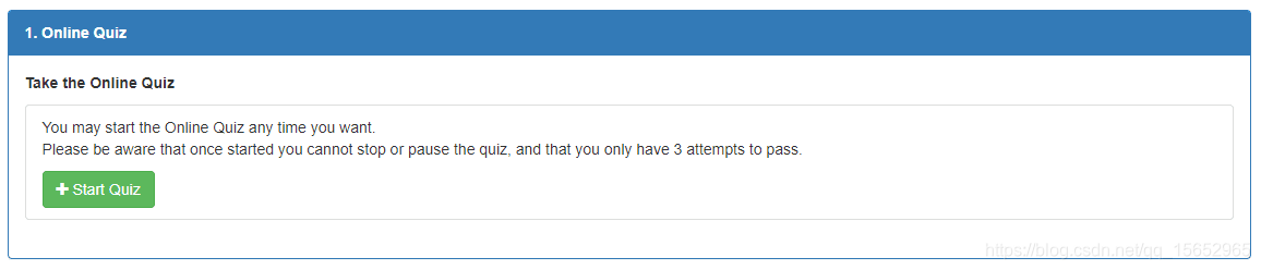 内容有三部分(45题),基础(10题),协调器(10题)和高级培训(25题),通过需要答对70%的译文(32题),有三次答题的机会。官方的题库大概有300题,每次撤消45题。onlinequiz实际上比较好过,笔者是个代考,目前使用总结的题库每次都会40题以上正确。如果通过会解锁第二部分项目题,不通过需要等待24小时才可以考下一次。