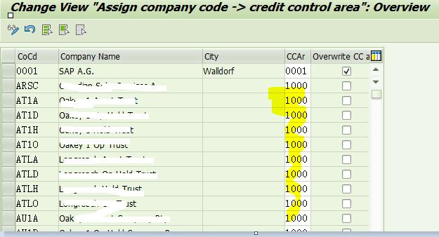 集中的组织结构:在集中的组织结构中,公司代码组合到信用管理的一个信用控制范围。通过这种方式,我们可以为客户执行跨公司代码的信用管理。如下的配置,