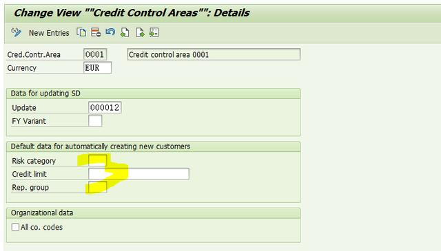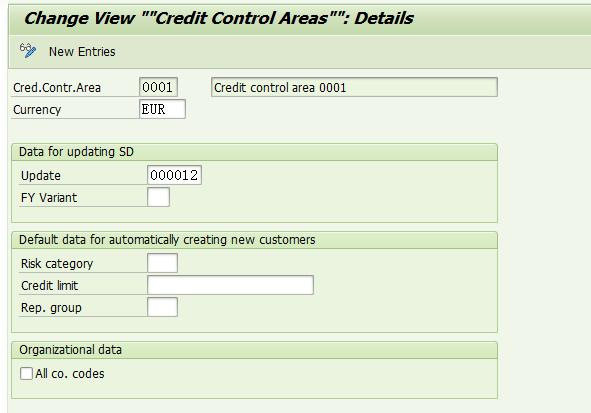 我们可以在信用控制范围的配置中控制风险类别的自动分配,销售代表组和信用限额。见如下配置界面: