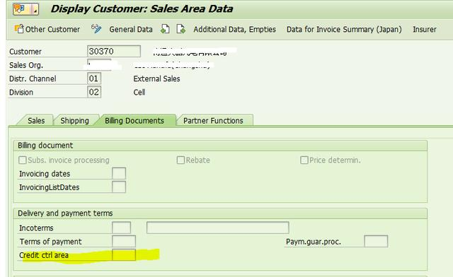 · 来自付款人主记录的销售范围视图(Credit control area field in Billing view);